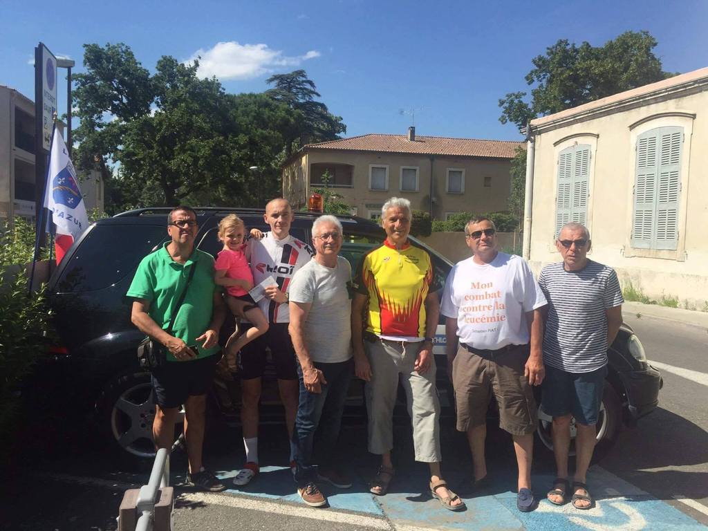 A 17h j'ai été reçu devant la mairie de Montfavet en présence de M. Castelli (maire de la commune) Accompagné de M. Dussol Thierry ( président du Christophe vélo club montfavet) et de M.Davin Jean pierre (président du club cyclotourisme) , ainsi que deux coureurs .