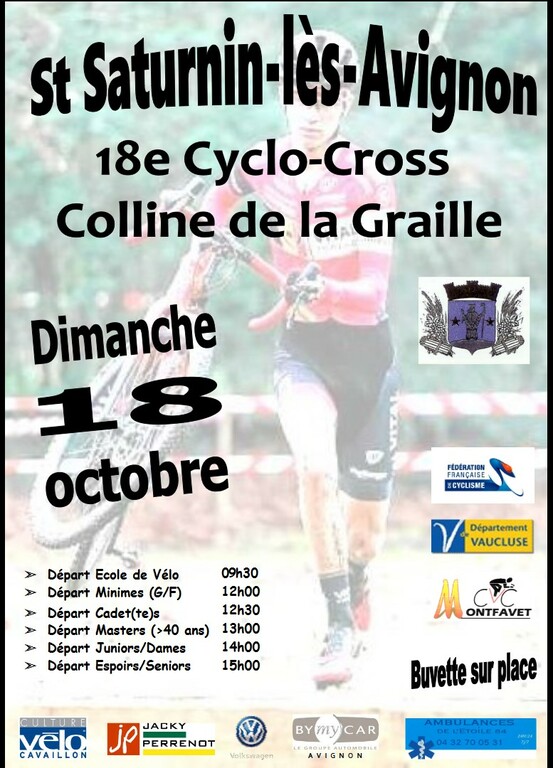Dossards : à partir de 11h la Colline de la Graille Départ : Minimes 12h / Cadets: 12h30 / Masters 40+ : 13h / Juniors + Dames : 14h / Espoirs Seniors: 15h