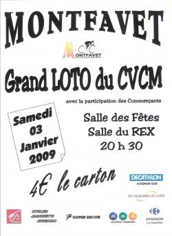 Le CVC organise son traditionnel loto le samedi 03 janvier, Salle du Rex et Salle des Fêtes à Montfavet, à partir de 20h30.