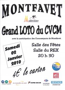 Le Christophe Vélo Club commencera l'année 2010 sur les chapeaux de roues... dès le 02 janvier, nous serons tous salle du Rex ou salle des Fêtes pour jouer au loto. En effet comme tous les ans, le Grand Loto du CVC aura lieu le premier samedi de l'année... donc pas le temps de récupérer après les excès du 1er de l'an.