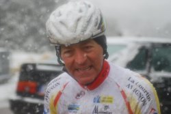 Photo : Quelques minutes après l'arrivée, frigorifié mais heureux du bon coup réalisé... avouez qu'il ressemble davantage à un skieur après son slalom qu'à un cycliste en Provence !!!