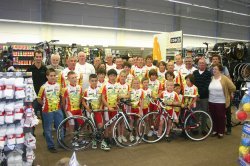 Vendredi soir, les dirigeants du CVC Montfavet et leur président ont réuni, comme chaque début de saison, les licenciés du club pour la présentation officielle des nouvelles tenues 2011... Une nouveauté cette année, cette petite cérémonie s'est déroulée dans le magasin Intersport-Mistral 7, l'un de nos sponsors et non à la Salle des Fêtes comme habituellement. Olivier Ponzo, responsable du magasin de Sorgues et licencié au club, ainsi que le directeur des trois magasins (Carpentras, Sorgues et Montfavet) ont eu la gentillesse d'accueillir les coureurs et dirigeants présents pour la traditionnelle photo de présentation des nouvelles tenues. Sur les quelques 75 compétiteurs que compte le club, toutes fédérations confondues (FFC,UFOLEP et FFH), seulement un vingtaine de coureurs étaient présents... constatons qu'une fois de plus l'Ecole de Cyclisme a "joué le jeu", puisque quasiment la totalité de nos jeunes pensionnaires ont fait le déplacement. Dommage que les plus grands n'aient pas suivi l'exemple, la photo de famille aurait pu être beaucoup plus imposante !!!