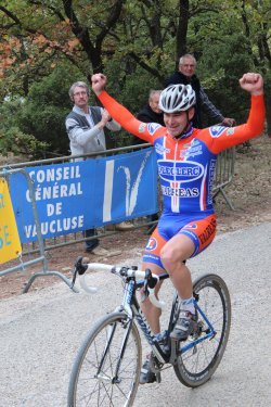 Photo : L’arrivée victorieuse du senior Olivier Poupin (VC Valréas).