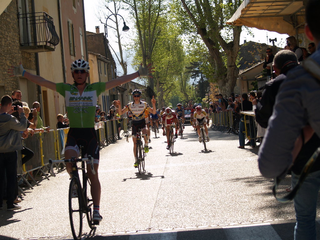Sur notre difficile circuit d'Entrechaux, plus de 100 coureurs étaient réunis pour disputer la 3° étape du Tour PACA JUNIORS 2013, avec de sérieux concurrents comme Valentin MADOUAS vainqueur de la 1° manche du Challenge National, une équipe espagnole. Dès le début de la montée du Col de Veau, le peloton se disloqua rapidement en plusieurs groupes. Jérémy DEFAYE toujours présent aux avant poste controla la course. Dans le dernier tour 10 coureurs réussir à sortir du peloton pour terminer au sprint et voir la victoire de Valentin MADOUAS devant Teddy RASCLE. Jérémy DEFAYE termine 5° et conserve sa place de leader. Nos Monfavetains terminent plus loin avec Jérémy ThUILLIER 32° et Loick DUSSOL 54°, abandon de Vincent DE LA FOLIE