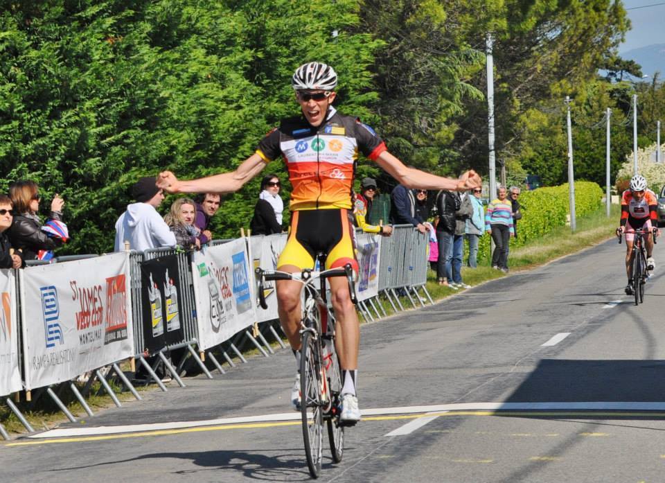 A l'approche de l'arrivée environ 800m je me retrouve en tête malgré moi, je pensai l'arrivée un peu plus loin, Malgré tout j'arrive à faire passer Loris Larnac devant moi lors du dernier croisement, il reste environ 400m. Le vent vient de la droite il roule à gauche pour me mettre dans le vent, c'est bien joué, cependant je suis dans la position la plus favorable, le sprint est lancé et je le déborde assez rapidement, je reste un peu sur ma réserve je ne sais pas où est Philibert...Et finalement à 2m de la ligne je peux lever les bras et savourer ma première victoire, je suis resté les points serrés encore 200m après la ligne, 17ans de vélo avant de connaitre cette sensation ça fait long alors autant en profiter ! Loris Larnac finit deuxième et Christophe Philibert complète le podium. Derrière un groupe de contre en termine à une grosse trentaine de seconde, et le peloton arrive à son tour où Loick fini 3ème du sprint ce qui le classe 14ème de la course, Simon et Valentin finissent au chaud dans le paquet, 38ème et 50ème, petite frayeur pour Valentin qui est allé dans l'herbe après une vague pour le sprint...