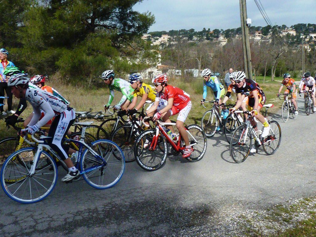 C’est un peloton de 78 coureurs qui a pris le départ ce matin vers 10h30 aux PENNES MIRABEAU, circuit de 4kms à couvrir 17 fois. Il y a du beau monde (AVC Aix, MANDELIEU, MONACO, VC LA POMME le LAS CYCLISME, LA GAVOTTE etc…) Quelques belles équipes, qui annoncent du spectacle. Le départ est neutralisé jusque sur le circuit, au départ réel le peloton s’élance et c’est d’entrée le CAVARRE Julien DURBESSON qui mène le train et dans la première montée le peloton perd pas mal d’unité. Au deuxième passage il reste en tête une quarantaine de coureurs, Quentin est dans ce groupe mais semble souffrir (il tire un peu la langue). Au troisième passage 13 coureurs ont creusé un petit écart ( 10 secondes) sur un groupe d’une dizaine de coureurs avec Quentin et ensuite à un autre groupe d’une quinzaine de coureurs à ( 15 seconde ). Il apparait que cette bosse sera le juge de paix… pas encore pour cette fois car pendant 2 tours la situation semble figée et le groupe de Quentin rentre sur les 13 hommes (il me semble avoir retrouvé la pêche). Désormais il y en a de partout sur le circuit, au fil des tours il y a bien des accélérations dans cette bosse notamment, mais personne ne lâche et l’allure se ralentit, le groupe de 15 arrive à rentrer. C’est dans la fin du 13éme passage que les choses vont se décanter, dans cette montée assez raide sur les 100 derniers mètres, 3 coureurs vont prendre le large J.DURBESSON, T. OUSRY et N. PERNOT ils vont faire la descente à bloc et derrière 5 hommes, dont Quentin se mettent en chasse, ils reviennent sur eux à une centaine de mètres mais n’arriveront pas à les rejoindre. Il reste 2 tours et Quentin n’arrive plus à passer sa plaque (cause batterie déchargée) LOL !! (C’est bien le DI2 faut-il penser à recharger la batterie). Il s’accroche mais il sait que pour lui le sprint est cuit. C’est N. PERNOT de MANDELIEU qui s’impose devant T. OUSTRY et J. DURBESSON quant à Quentin il termine dernier de son groupe de 5 sans pouvoir disputer le sprint (Pu… de batterie) Il se classe 8eme de la course.