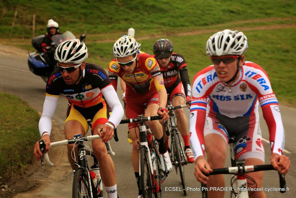 Une des premières courses Elite pour le club et les coureurs, face à ce niveau relevé nos coureurs ont montré le maillot, Florian parti au km 0 dans une échappée de 4 coureurs a animé la course avant d'être ravaler par le peloton à la mi course après 75km de course. Franz a tenté une attaque sans succès, avant de la payer au prix fort lorsque le rouleau compresseur s'est mit en route jusqu'en haut du col. Sébastien a tenté d'accompagner quelques contres sans succès avant d'être piégé le tour d'après, mal placé lors du 4ème passage dans le col de la Gaché, il s'est fait piégé par un mouvement de course, de petits groupes sont allés former un peloton à l'avant alors que son groupe se transformait en groupetto, il a réagit trop tard mais a gardé le rythme de course jusqu'à l'arrivée dans un petit groupe ( 59° ). Yannick arrive dans le groupetto juste derrière ( 67° ).