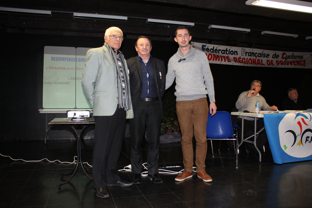 André GOUGEON a été recompensé à l'occasion de l'assemblée Générale du Comité de Provence samedi dernier, il a reçu la médaille du mérite de la FFC. Photo prise avec François CONTI du comité 04.