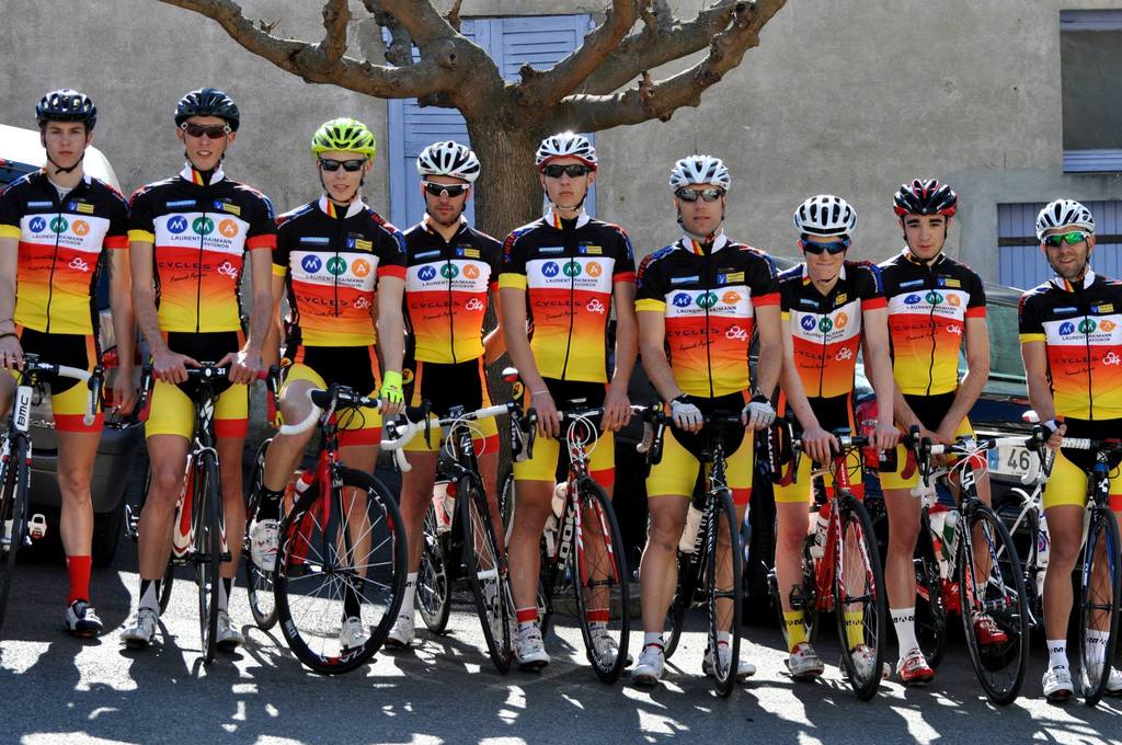 Restait l'épreuve reine de la journée à disputer l'après midi, de nombreux parents des jeunes coureurs sont restés pour regarder la course et participer à l'ambiance festive dans l'ascension dans le village. L'objectif du président était de ramener le top 5 lors de cette épreuve. Dès le départ nos coureurs sont partis au travail, Sébastien s'échappant dès le premier tour dans un groupe de 5 coureurs, qui comptera 1'15" d'avance après 3 tours de course avant que ça ne bouge derrière. Au 5ème tour, plus que 30" d'avance et 4 hommes en tête, Sébastien toujours présent, derrière ça bouge, nos coureurs vont dans les différents groupe de contre, le CVC est omniprésent. Au 7ème tour regroupement à l'avant, une douzaine de coureur reviennent sur les 4 de tête, 3 coureurs du CVC dans ce groupe, Florian, Franz et Sébastien. Assez rapidement ce groupe va creuser l'écart sur le peloton et se disputer la victoire. Une accélération de Sébastien dans la bosse à 2 tours de l'arrivée va secouer ce groupe, après quelques kilomètres tout rentre dans l'ordre. Les coureurs arrivent groupés lors de l'avant dernière ascension, Damien Albaret porte une attaque et 4 coureurs vont prendre les devant, il emmène avec lui Esquer, Jacquamet et Florian. Franz et Sébastien sont dans le second groupe. Jacquamet remporte la course, Albaret 2ème, Esquer 3, Florian échoue au pied du podium malheureusement, Sébastien termine 6ème et Franz victime de crampes lors du sprint fini 12ème. Une belle course collective pour le CVC Montfavet, de bonne augure pour ce groupe qui courrait pour la première fois tous ensemble ( 11 coureurs au départ ).