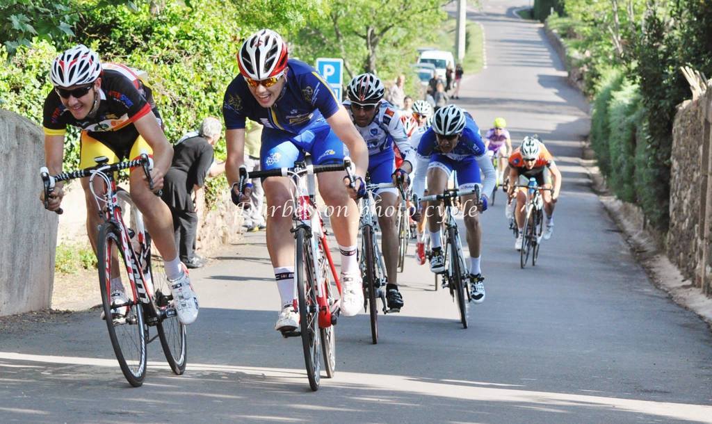 Un placement qui se révelera payant. Pas d'effort superflu pour combler les cassures. Les attaques fusent, mais je peux me permettre de recoller au train et ainsi basculer dans la descente en 4e position du peloton. Nous ne sommes plus qu'une dizaine. Loic aurait pu en être s'il n'avait pas trâinassé en queue de paquet au pied du col. Il bascule à moins de 50 mètres de mon groupe mais parviendra à règler le sien au sprint devant Durbesson pour décrocher la 15e place. Dans mon groupe, c'est la mésentente. Cela permet aux trois rescapés de l'échappée des dix de se disputer la victoire. Seulement 30 secondes devant nous. Je termine bon dernier du sprint, à la 12e place. Mes premiers points de l'année. Encourageant pour la suite !