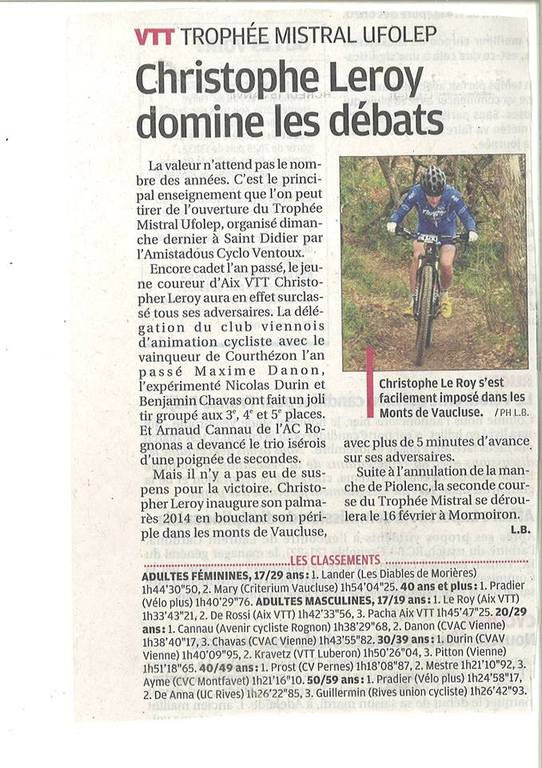 Quelques participants du club étaient présents nottament Franck Ayme ( des cycles 84 ), qui termine 3ème, Benjamin Landier l'a longtemps accompagné mais a été victime d'un incident mécanique.