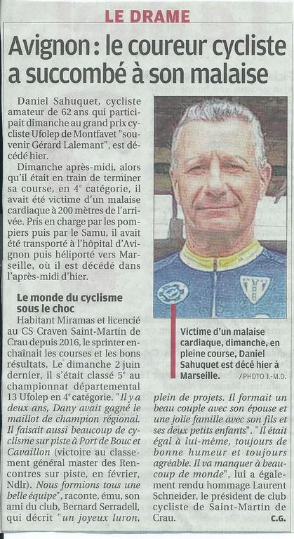 Nous présentons au nom de tous les membres du Christophe Vélo Club Montfavet nos sincères condoléances à sa famille et à ses amis.