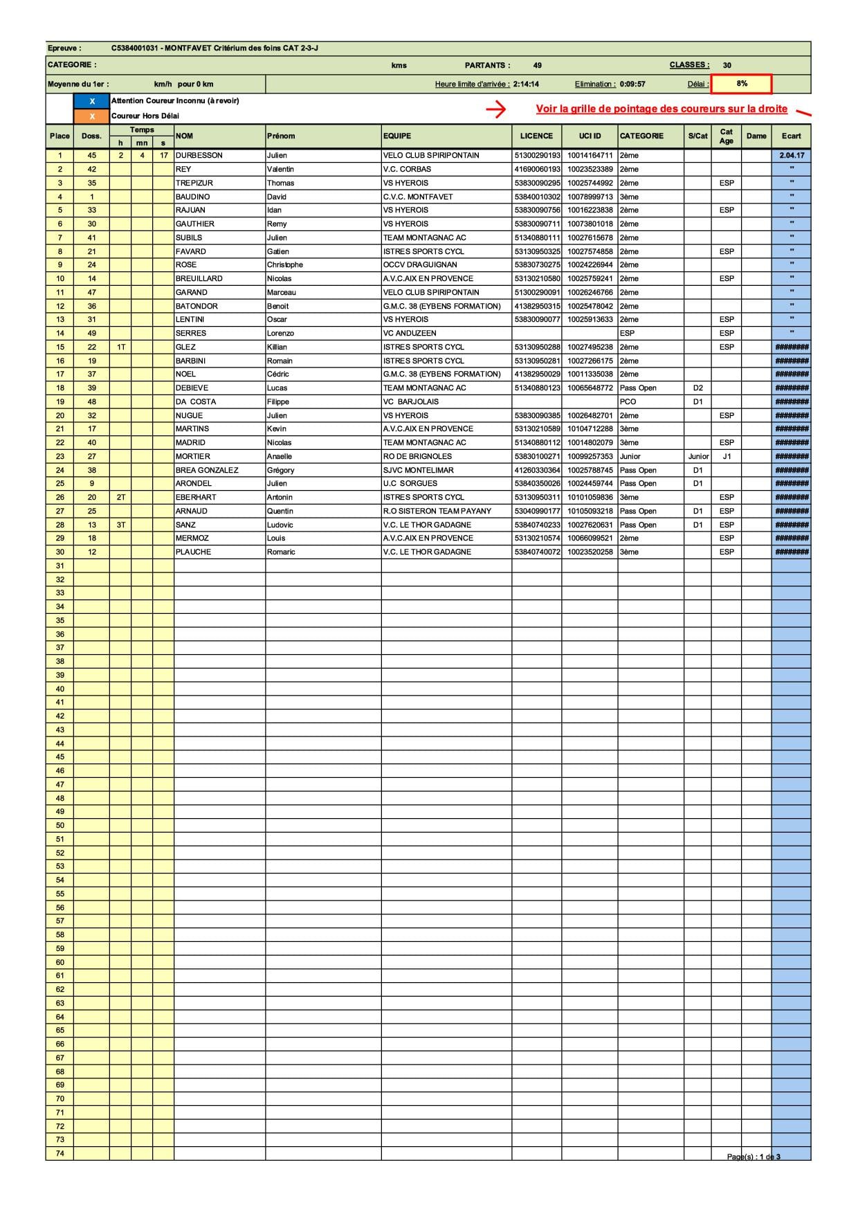 Horaires départ CLM Championnat Region Sud
